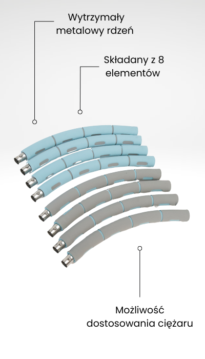 Koło Hula Hop z 8 Elementów z Piankowym Obiciem FIT.ME! Posiada wytrzymały metalowy rdzeń, który pozwala na dostosowanie intensywności treningu poprzez wypełnienie go piaskiem lub ryżem. Miękkie obicie z pianki nie tylko zapobiega ślizganiu, ale również oferuje przyjemny dotyk podczas każdego ćwiczenia. Koło Hula Hop nie tylko sprzyja poprawie koordynacji, równowagi i siły mięśniowej, ale również wspomaga proces odchudzania i ujędrniania ciała. Jego imponująca średnica wynosząca 87 cm pozwala na intensywny trening, przyspieszając tempo spalania kalorii.