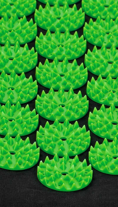 Rozety wykonane są z wytrzymałego tworzywa sztucznego, gwarantując odpowiedni układ kolców do akupresury