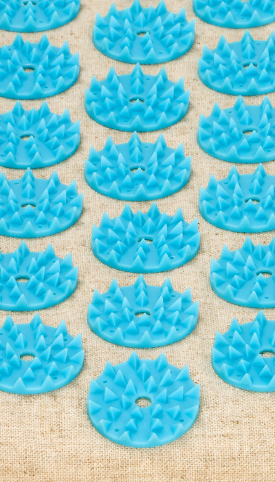 Rozety wykonane są z wytrzymałego tworzywa sztucznego, gwarantując odpowiedni układ kolców do akupresury
