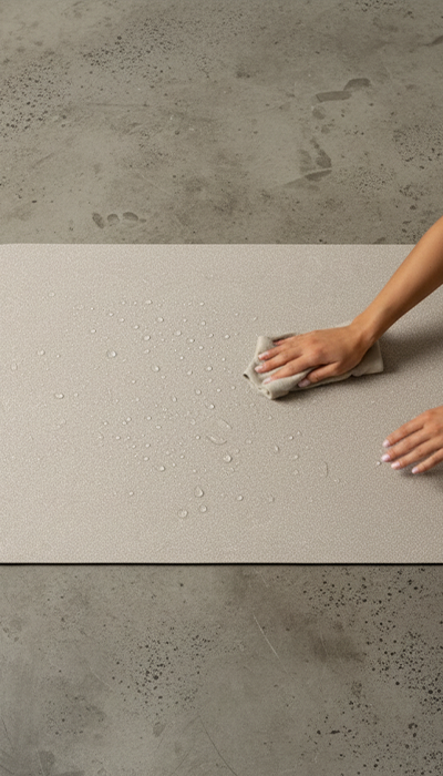 Powierzchnia PU świetnie radzi sobie z wilgocią – mata nie ślizga się nawet przy intensywnym wysiłku