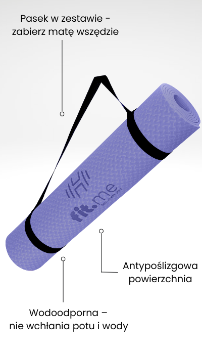 Zadbaj o ciało i umysł z matą do jogi fit.me. W domowych warunkach o dowolnej porze możesz odbyć sesję jogi. Ta mata do jogi to produkt, który reprezentuje jakość. Jej przemyślany skład materiałowy nie zawiera szkodliwych barwników, PCV ani toksycznych materiałów, dzięki czemu mata jest szczególnie przyjazna dla skóry. Dzięki temu bez wahania możesz stanąć na macie i skupić się na sobie.