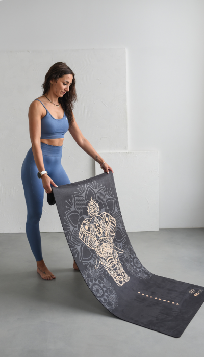 Zamszowa powierzchnia jest miękka i przyjemna w dotyku, a wzór słonia dodaje macie wyjątkowego charakteru. Doskonała do praktyki vinyasy, hatha jogi oraz ćwiczeń relaksacyjnych. To ekologiczny wybór dla świadomych joginów.
